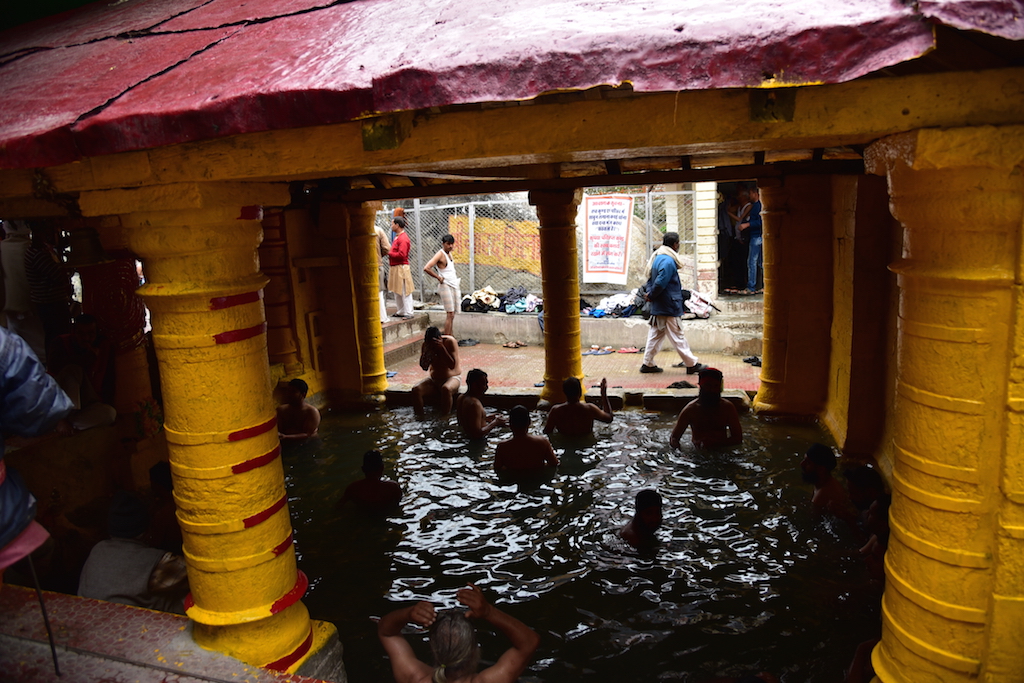 The devotees generally immerse themselves into the hot water from Taptakund before entering into the main temple. The water there is supposed to have curative powers. Taptakund is pleasant to bath in while the Narad kund below is far more dangerous and laden with moss walls. People generally don’t bathe in Narad Kund.