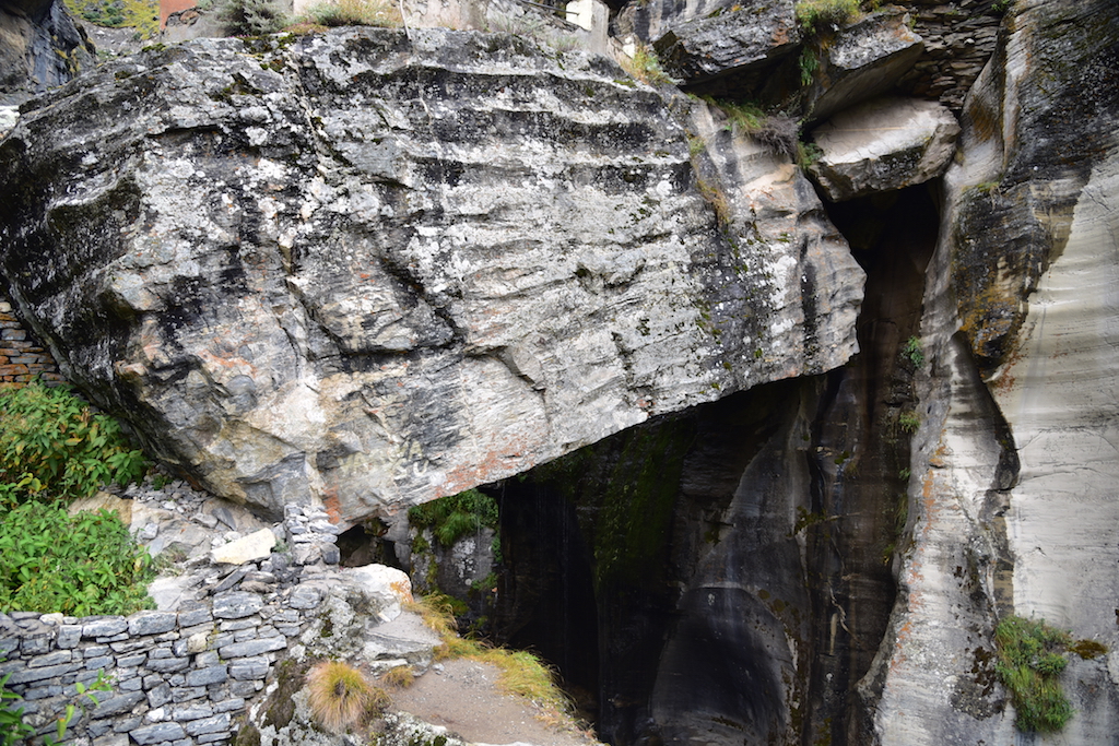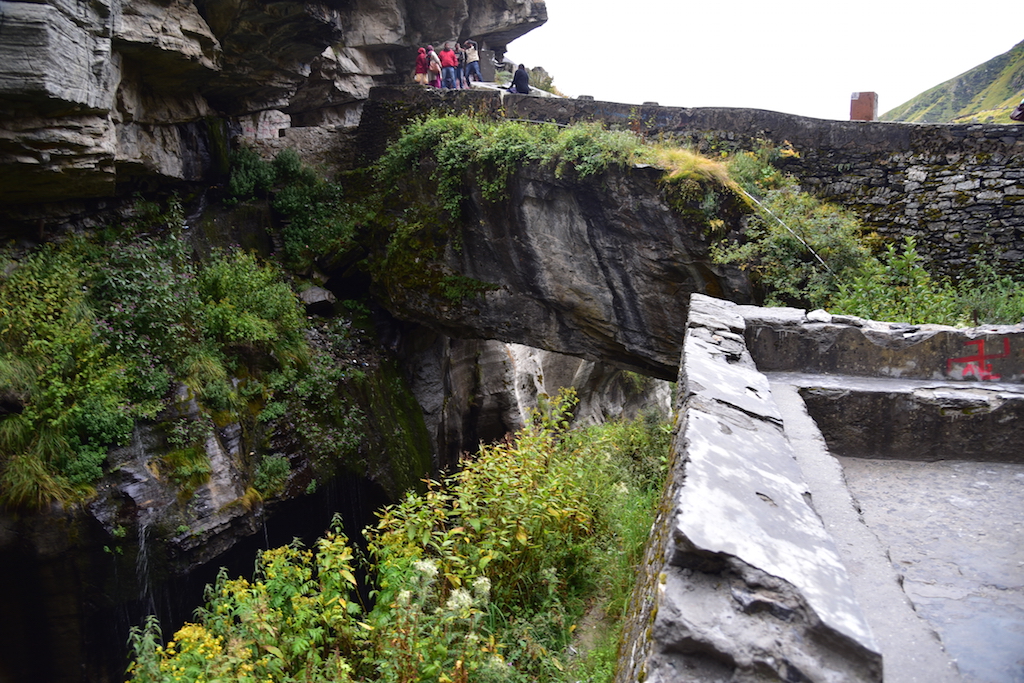 After paying obeisance to both Veda Vyas and Ganesh, it was time to explore other areas in Mana. If you go up the slope, you would find a river that is gushing down from a cave with a tremendous noise. This is the river Saraswathi which is reputed to flow under the ground for the most part only to surface for a brief space at Mana before rushing down to embrace the ever ready Alakananda. The place where this confluence happens is called Keshav Prayag which is in Mana village itself.