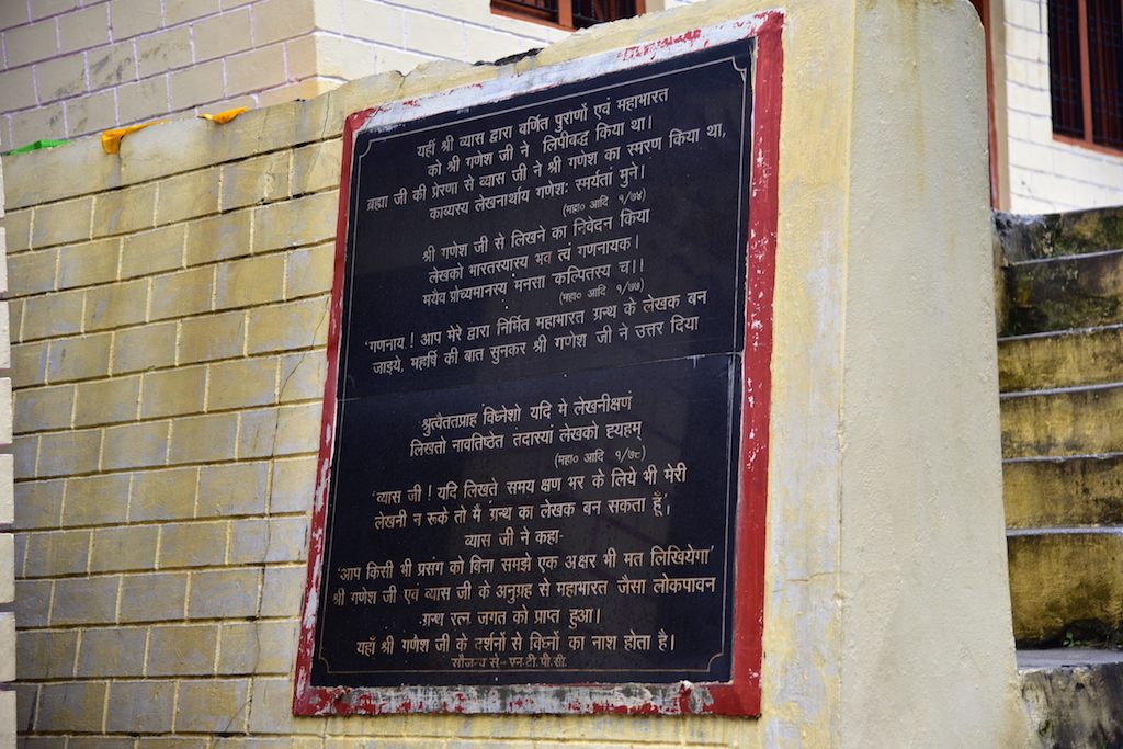 Mana is famous for a few spots. One is Vyas Gufa and the other one is Ganesh Gufa. These two are caves in which Veda Vyas and Ganesh resided. Veda Vyas is credited with the authoring of most of the vedas, puranas and the upanishads. He has preserved the Sanathan Dharma for posterity by authoring these books himself. But when it came to writing the Mahabharatha, Veda Vyas felt that needed help. I would not blame him. With over 100,000 slokas (each of them being a couplet) the Mahabharatha is verily the longest epic ever written. It is supposed to be four times the size of the Ramayana and ten times the combined size of both Iliad and Odyssey.